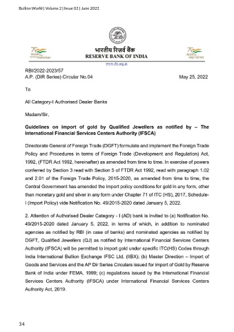 Bullion World | Volume 2 | Issue 02 | June 2022 34