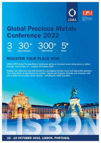 LBMA/LPPM Global Precious Metals Conference will be an in-person event taking place in Lisbon,