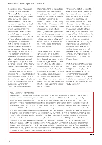 customers in Maharashtra." Director – India Operations, Malabar GOLD certification.
