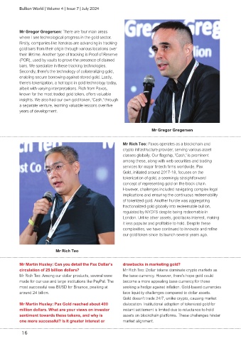 Mr Martin Huxley: Pax Gold reached about 400 dislocation. Institutional adoption of tokenized gold for