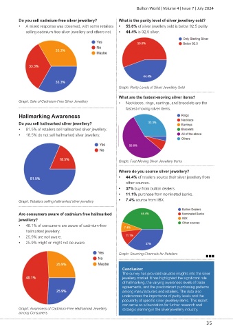 • A mixed response was observed, with some retailers • 55.6% of silver jewellery sold is below 92.5 purity.