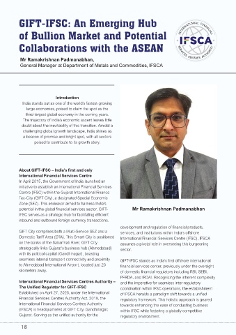 potential in the global financial services sector. GIFT- Mr Ramakrishnan Padmanabhan